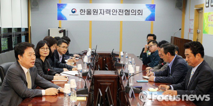 (서울=포커스뉴스) 김용환 원자력안전위원회 위원장이 27일 한울원자력본부 제1발전소 회의실에서 한울원자력안전협의회 위원들과 간담회를 나누고 있다. 김 위원장은 지난 15일 취임해 고리원자력안전협의회를 시작으로 지역주민과의 소통을 강조하며 각 지역 원자력안전협의회 위원들과 소통 행보를 이어갔다. <사진제공=원자력안전위원회>