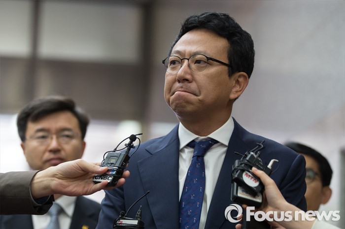 | △ 취재진의 질문듣는 KT |