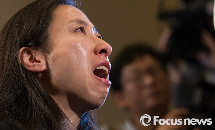 (서울=포커스뉴스) 2일 오전 서울 영등포구 콘래드호텔에서 열린 '옥시레킷벤키저(현 RB코리아) 가습기 살균제 파동' 관련 기자회견에서 피해자 가족들이 아타 울라시드 사프달 옥시코리아 대표에게 항의 하고 있다.