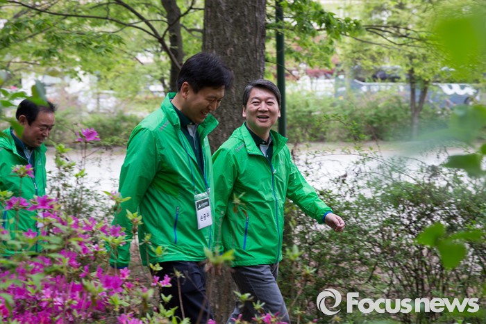 (양평=포커스뉴스) 국민의당 20대 총선 당선자 워크숍 이틀째인 27일 오전 경기도 양평 한화리조트에서 안철수 국민의당 상임공동대표와 손금주 당선인이 미소를 짓고 있다.