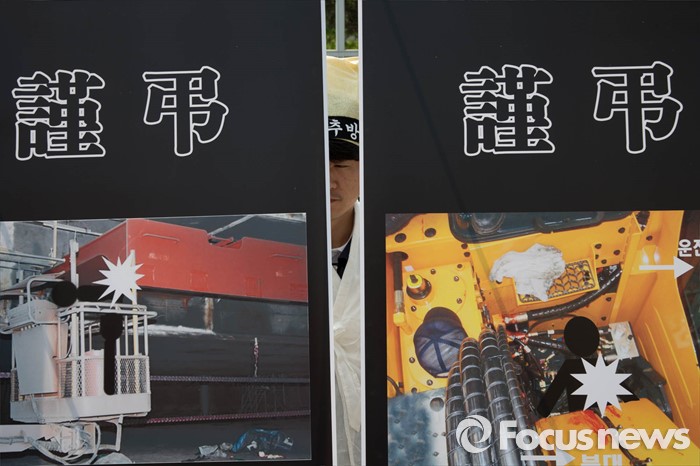(서울=포커스뉴스) 29일 오후 서울 종로구 정부서울청사 앞에서 상경한 현대중공업노조원들이 구조조정 중단 및 산업현장 안정을 촉구하며 기자회견을 하고 있다.