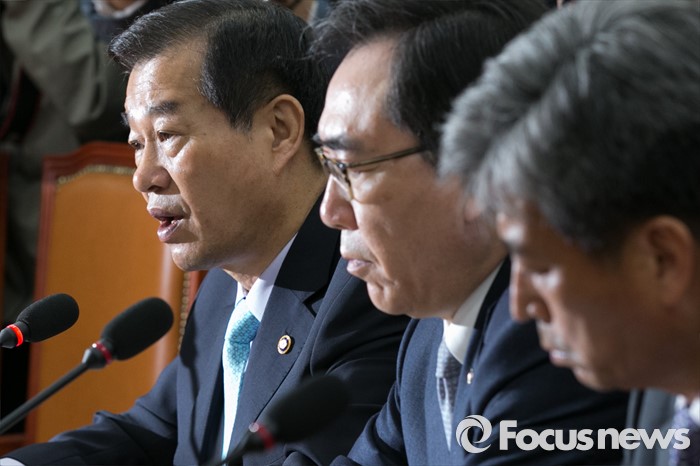 (서울=포커스뉴스) 황인무(왼쪽) 국방부 차관이 28일 오전 서울 여의도 국회에서 열린 대북 관련 긴급 안보 대책회의에 참석해, 발언하고 있다.