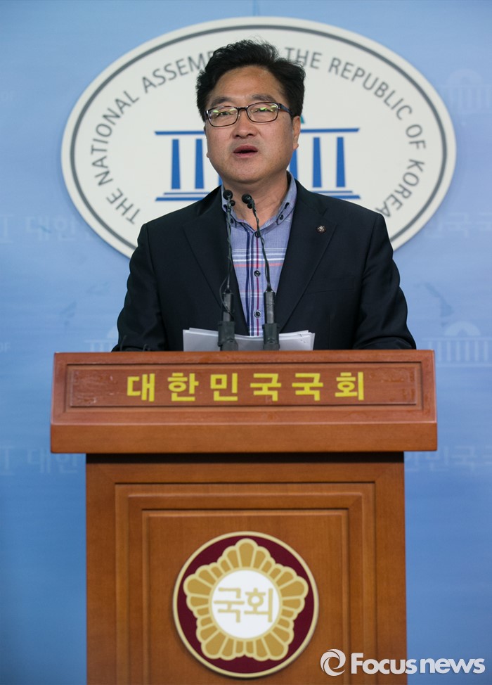 (서울=포커스뉴스) 우원식 더불어민주당 의원이 29일 오후 서울 여의도 국회 정론관에서 원내대표 출마 기자회견을 하고 있다.