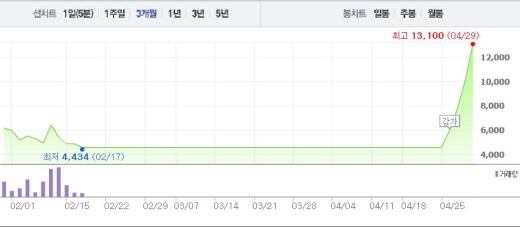 코아로직은 26일과 27일, 28일에도 29%의 상승폭을 나타냈다. 25일 매매거래 정지시 2705원이였던 주가는 지금 4.8배 상승했다.