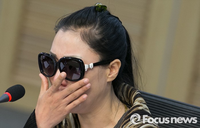 (서울=포커스뉴스) 26일 오후 서울 여의도 국회 의원회관에서 북한자유주간 주최, 통일맘연합 주관으로 열린 중국과 제3국에서 자녀와 헤어진 탈북여성들의 호소, '내 아이를 안고 싶어요' 증언대회에 참석한 한 탈북여성이 발언 중 슬픔에 잠겨 있다.
