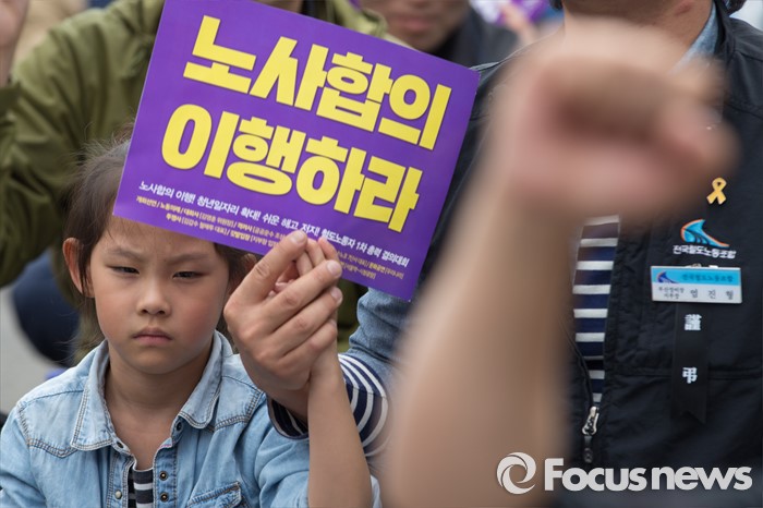 (서울=포커스뉴스) 30일 오후 서울역 광장에서 민주노총 공공운수 전국철도노동조합 회원들이 '철도노동자 1차 총력 결의대회'를 하고 있다.