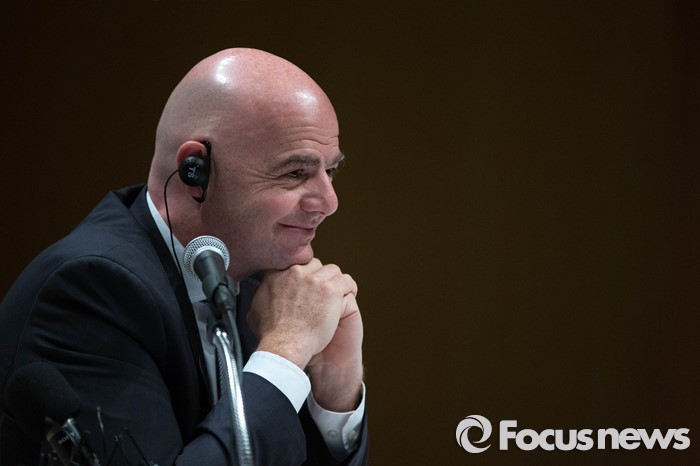 (서울=포커스뉴스) 한국을 방문한 지아니 인판티노(46, 스위스) FIFA 회장이 27일 오후 서울 강남구 아이파크타워에서 열린 기자회견에 참석, 취재진의 질문을 들으며 미소를 보이고 있다 .