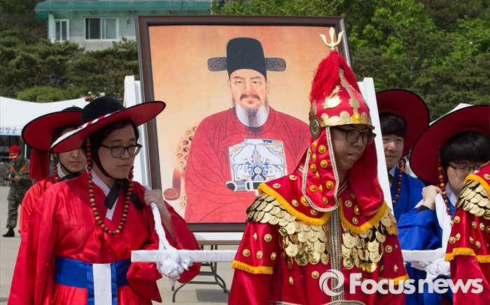 (서울=포커스뉴스) 28일 오전 서울 중구 남산골한옥마을에서 중구청 관계자들이 '충무공 탄생 471주년 기념 다례식'을 개최하고 있다.