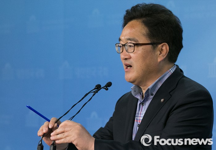 (서울=포커스뉴스) 우원식 더불어민주당 의원이 29일 오후 서울 여의도 국회 정론관에서 원내대표 출마 기자회견을 하고 있다.