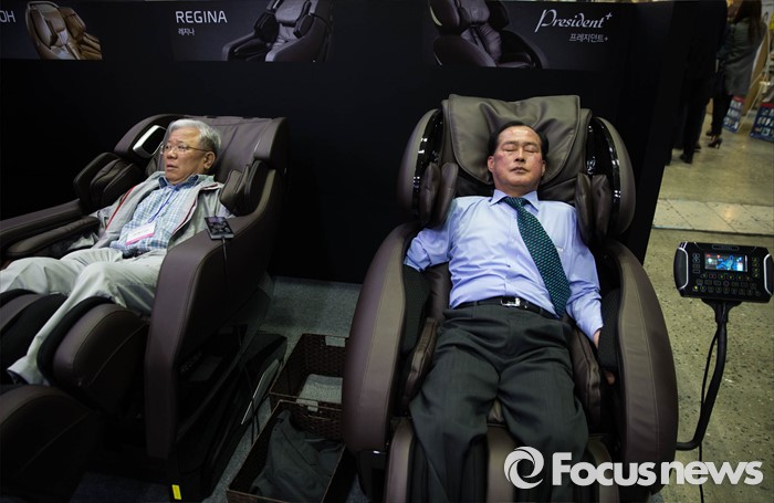 (서울=포커스뉴스) 28일 오전 서울 삼성동 코엑스에서 열린 2016 국제건강산업박람회에서 시민들이 부스에 마련된 제품을 체험하고 있다.