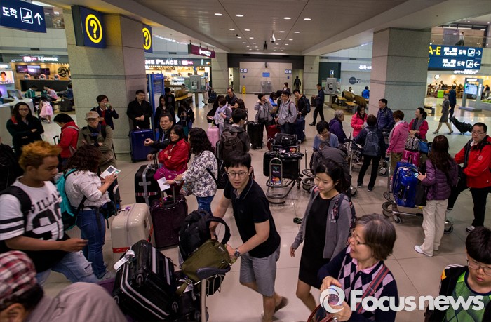 (영종도=포커스뉴스) 중국 노동절 연휴와 일본 골든 위크를 맞아 1일 외국인 관광객들이 인천국제공항을 통해 입국하고 있다.