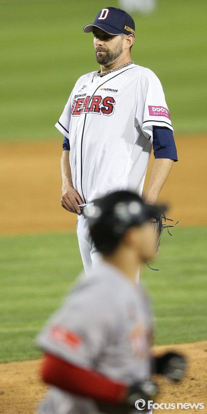 (서울=포커스뉴스) 26일 서울 잠실구장에서 열린 2016 프로야구 SK-두산 경기 5회초 2사 3루에서 두산 선발 니퍼트가 SK 이재원을 볼넷으로 출루시키고 있다.