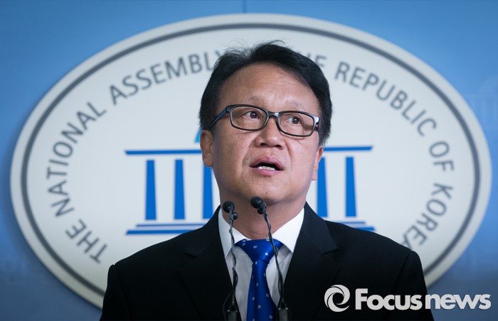 (서울=포커스뉴스) 민병두 더불어민주당 의원이 29일 오후 서울 여의도 국회 정론관에서 원내대표 출마 기자회견을 하고 있다.