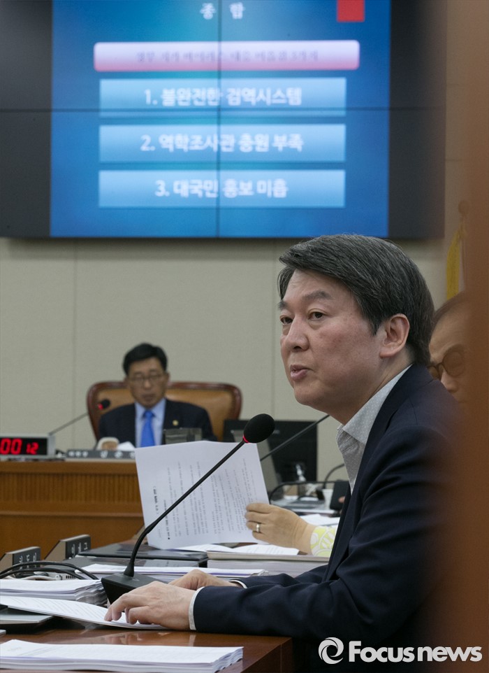 (서울=포커스뉴스) 안철수 국민의당 상임공동대표가 29일 오후 서울 여의도 국회에서 지카바이러스 관련 현안보고 등을 위해 열린 보건복지위원회 전체회의에 참석해 질의하고 있다.
