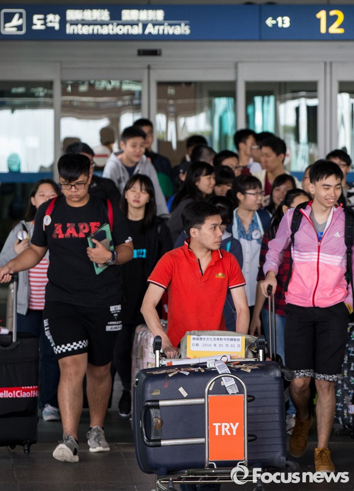 (영종도=포커스뉴스) 중국 노동절 연휴와 일본 골든 위크를 맞아 1일 외국인 관광객들이 인천국제공항을 통해 입국하고 있다.