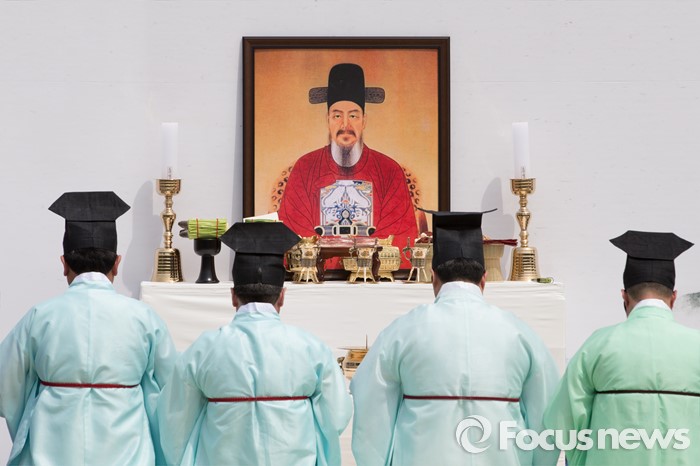(서울=포커스뉴스) 28일 오전 서울 중구 남산골한옥마을에서 중구청 관계자들이 '충무공 탄생 471주년 기념 다례식'을 개최하고 있다.