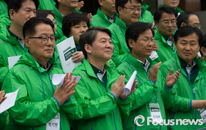 (양평=포커스뉴스) 안철수 국민의당 상임공동대표를 비롯한 20대 총선 당선자들이 27일 오전 경기도 양평 한화리조트에서 열린 20대 총선 당선자 워크숍에서 선언문 낭독 후 박수치고 있다.