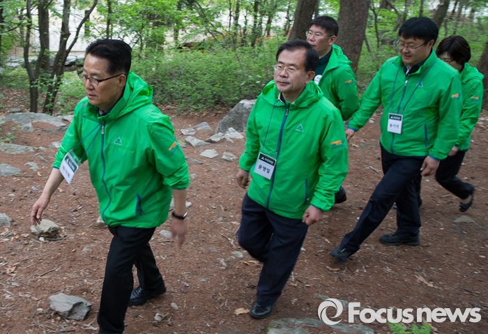 (양평=포커스뉴스) 국민의당 20대 총선 당선자 워크숍 이틀째인 27일 오전 경기도 양평 한화리조트에서 박지원 의원을 비롯한 당선인들이 아침 산책을 하고 있다.
