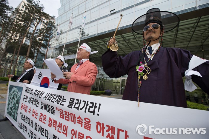 어버이연합 금품지원 규탄하는 회원들