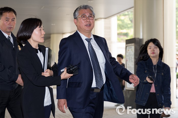 (서울=포커스뉴스) 청와대 문건유출 사건에 연루된 혐의로 재판에 넘겨진 조응천(20대 국회의원 당선인) 전 청와대 공직기강비서관이 29일 오후 서울 서초구 서울고등법원에서 열린 대통령기록물법 위반 등 2심 선고공판에 출석하기 위해 들어서고 있다.
