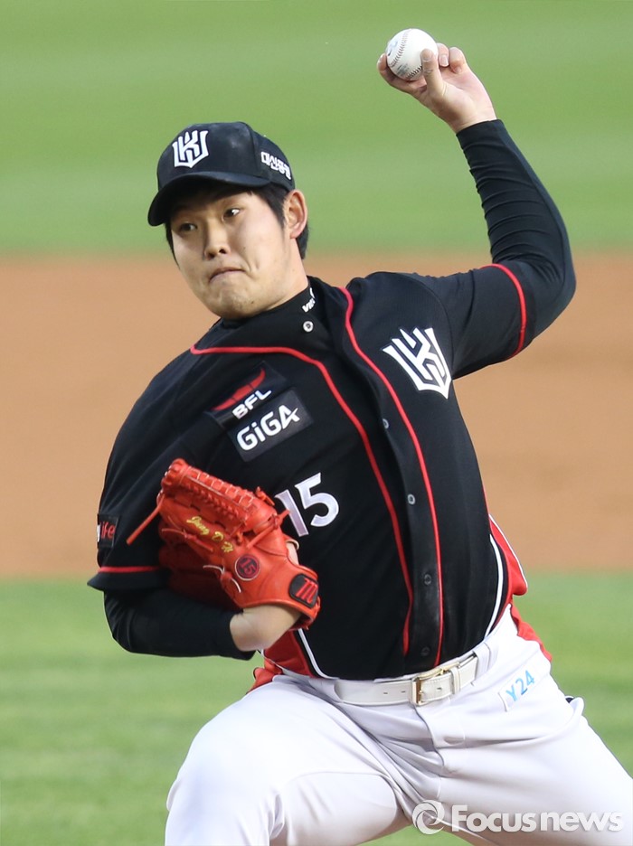 (서울=포커스뉴스) 29일 서울 잠실구장에서 열린 2016 프로야구 kt-LG 경기에서 1회말 kt 선발투수 정대현이 투구하고 있다.