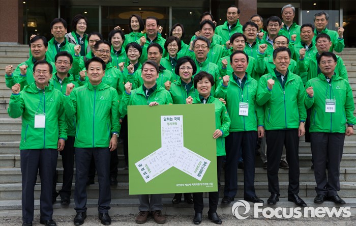 (양평=포커스뉴스) 국민의당 20대 총선 당선자 워크숍 이틀째인 27일 오전 경기도 양평 한화리조트에서 안철수 국민의당 상임공동대표를 비롯한 당선인들이 파이팅을 외치고 있다.