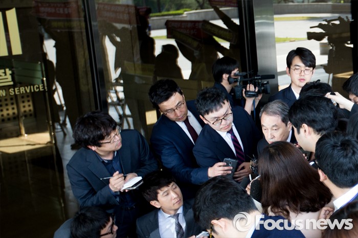 (서울=포커스뉴스) 수 많은 목숨을 앗아간 가습기 살균제가 만들어졌을 당시 옥시 최고경영자를 지낸 신현우 전 옥시 대표가 26일 오전 서울 서초구 서울중앙지검에 피의자 신분으로 출석 하며 취재진에게 질문을 받고 있다.