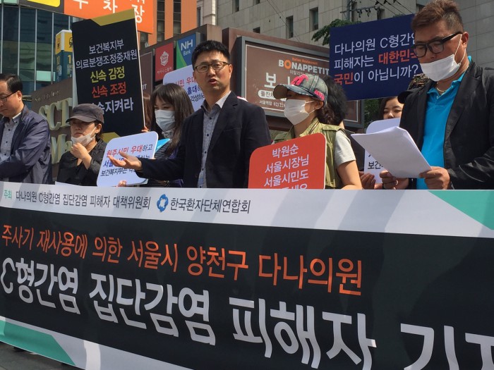 서울 양천구 다나의원에서 집단으로 C형간염에 감염된 피해자들과 한국환자단체연합회(이하 환연)는 2일 “지난해 11월 주사기 재사용으로 다나의원 환자 97명이 C형간염에 집단 감염됐지만 고액의 약값과 의료분쟁조정절차의 지연으로 5개월이 경과한 지금도 제대로 치료를 받지 못하고 있다”고 주장했다.