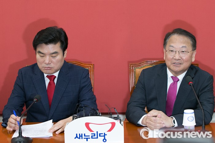 (서울=포커스뉴스) 유일호(오른쪽) 경제부총리 겸 기획재정부 장관이 29일 오전 서울 여의도 국회 새누리당 원내대표실을 방문해, 인사말을 하고 있다. 이날 유 부총리는 여야 3당 원내지도부를 면담하고, 경제활성화법 등 쟁점법안 처리를 촉구했다.