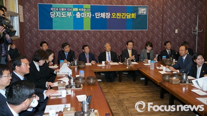 (광주=포커스뉴스) 김종인 더불어민주당 비대위 대표와 20대 총선 당선 및 낙선 인사들, 윤장현 광주시장 등이 25일 오후 광주의 한 음식점에서 당지도부·출마자·단체장 오찬 간담회를 하고 있다.