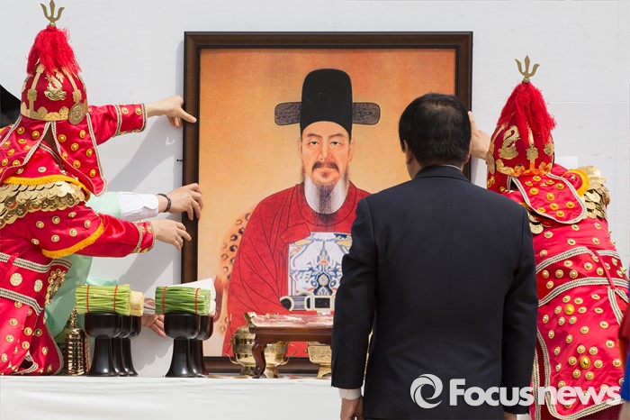 (서울=포커스뉴스) 28일 오전 서울 중구 남산골한옥마을에서 중구청 관계자들이 '충무공 탄생 471주년 기념 다례식'을 개최하고 있다.
