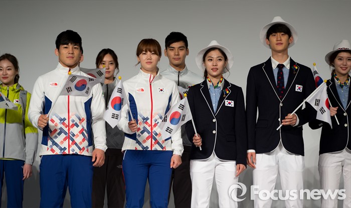 (서울=포커스뉴스) 27일 오후 서울 노원구 태릉선수촌에서 열린 제31회 리우하계올림픽대회 D-100일 미디어데이에서 선수와 모델들이 리우올림픽 국가대표 선수단 단복을 선보이고 있다.