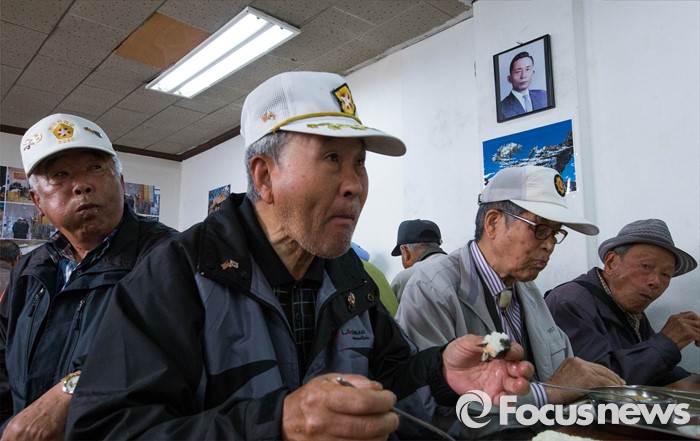 | △ 박정희 전 대통령 초상 아래 점심식사를 |