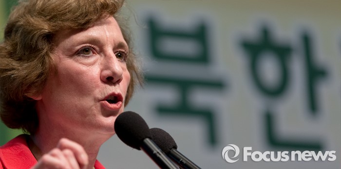 (서울=포커스뉴스) 28일 오후 서울 중구 프레스센터에서 북한정권 붕괴 후 탈북민들의 역할 대토론회에 참석한 수잔 숄티 디펜스포럼 대표가 주제발표를 하고 있다.