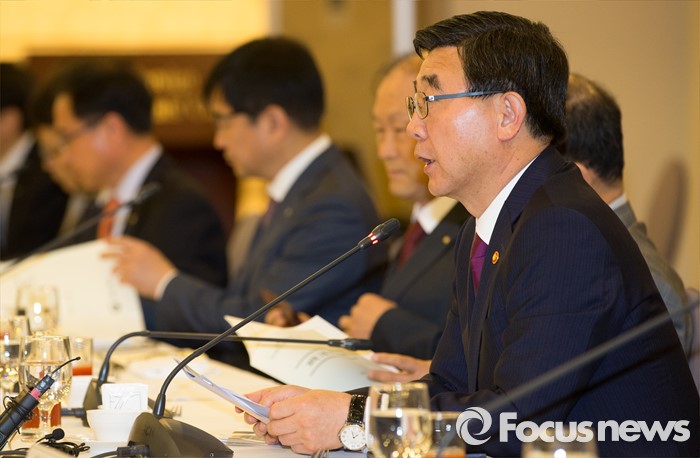 (서울=포커스뉴스) 이기권 고용노동부 장관이 28일 오전 서울 중구 한국프레스센터에서 열린 '30대 그룹 CEO 간담회'에 참석해 모두발언을 하고 있다.