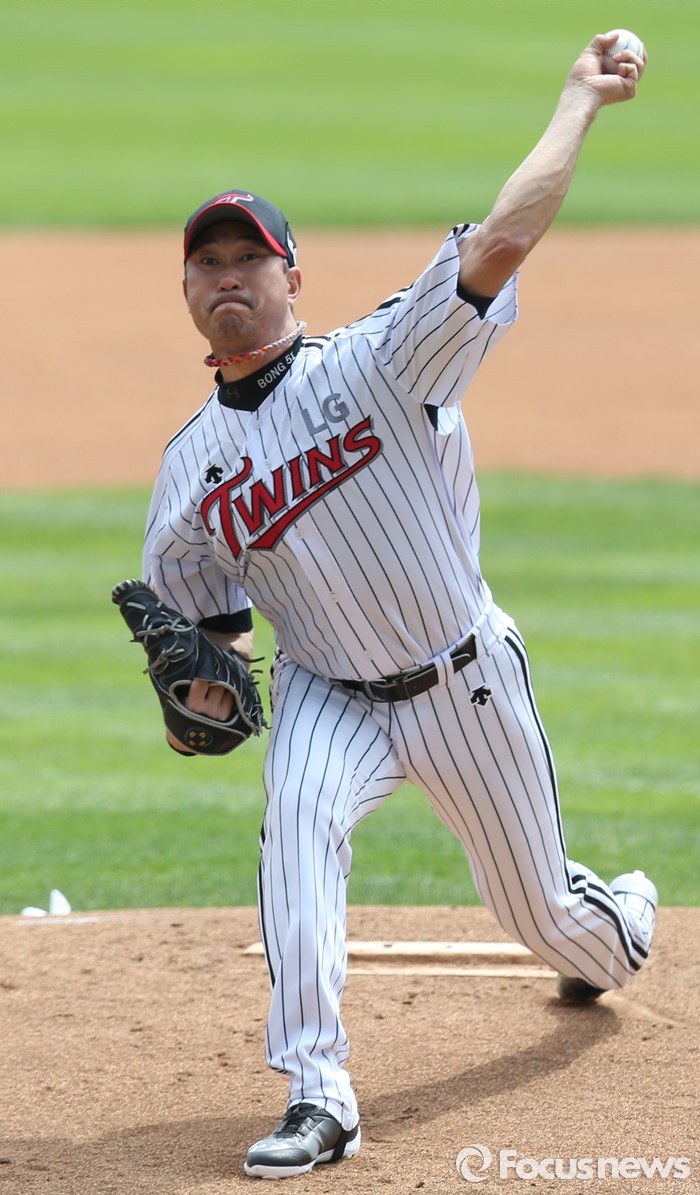 (서울=포커스뉴스) 1일 서울 잠실구장에서 열린 2016 프로야구 kt-LG 경기에서 1회초 LG 선발투수 봉중근이 투구하고 있다.