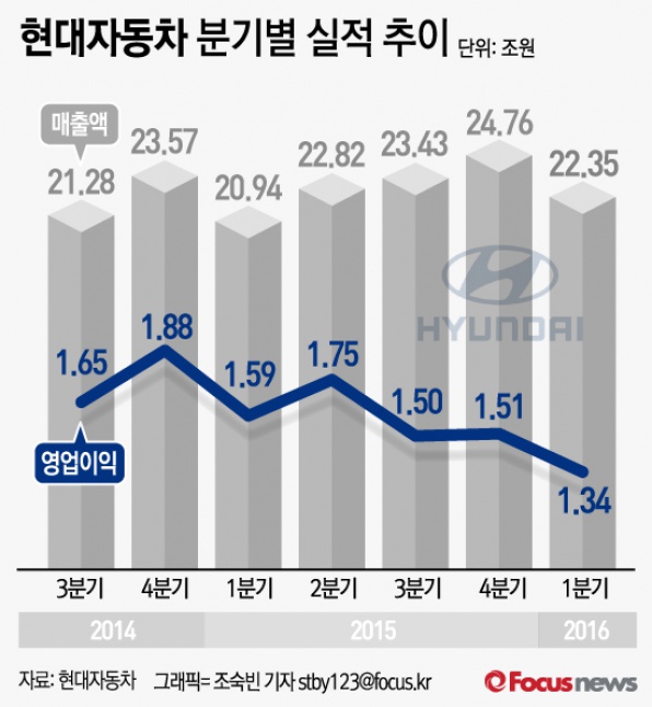 | △ [그래픽] 현대차 분기별 실적 추이 |