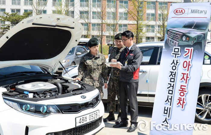 (서울=포커스뉴스) 기아자동차가 지리적 여건으로 차량 점검 서비스 혜택을 받기 힘든 군 부대 고객들을 위해 ‘나라사랑 군(軍)가족차량 케어서비스’를 마련했다.