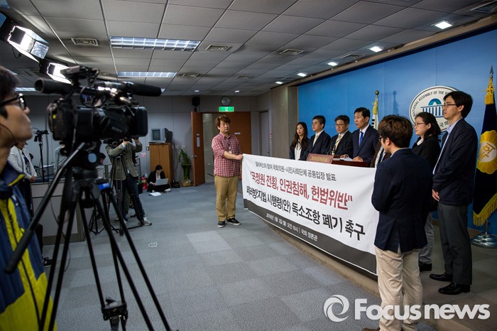 (서울=포커스뉴스) 이학영 더불어민주당 의원이 2일 오전 서울 여의도 국회에서 테러방지법 시행 관련 기자회견을 하고 있다.