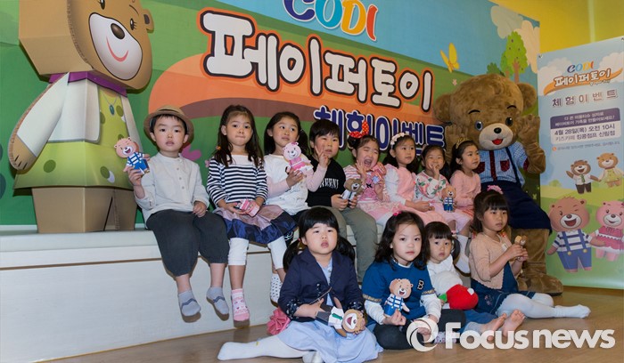 (서울=포커스뉴스) 28일 오전 서울 금천구 킹콩점프 키즈카페 신림점에서 아이들이 '코디 페이퍼토이' 제품을 선보이고 있다.