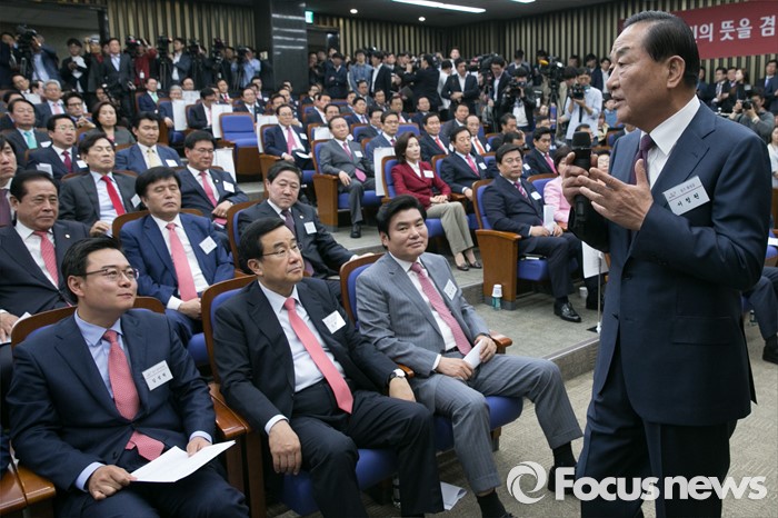 (서울=포커스뉴스) 서청원 새누리당 의원이 26일 오전 서울 여의도 국회에서 열린 당선자 워크숍에 참석해, 당선자 대표 인사말을 하고 있다.