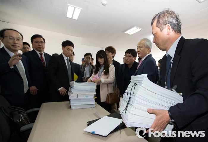 (부여=포커스뉴스) 29일 오후 이완구 전 국무총리가 2013년 재보궐 선거 때 사용한 충남 부여 선거사무소에서 서울고법 형사2부 관계자들이 현장검증을 실시하고 있다.