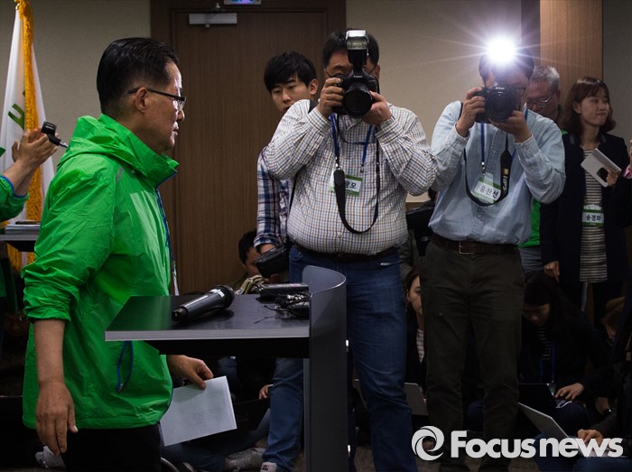 (양평=포커스뉴스) 국민의당 20대 총선 당선인 워크숍에서 합의 추대된 박지원 신임 원내대표가 27일 오전 경기도 양평 한화리조트에서 인사말을 마친 뒤 자리로 향하고 있다.
