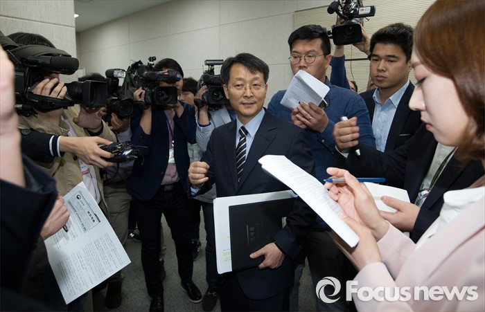 (세종=포커스뉴스) 이진석 교육부 학술장학지원관 2일 오전 세종시 정부세종청사 교육부 브리핑룸에서 법학전문대학원 입학실태조사 결과 발표를 마치고 취재진의 질문에 답변하고 있다.