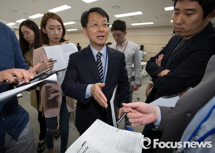 (세종=포커스뉴스) 이진석 교육부 학술장학지원관 2일 오전 세종시 정부세종청사 교육부 브리핑룸에서 법학전문대학원 입학실태조사 결과 발표를 마치고 취재진의 질문에 답변하고 있다.