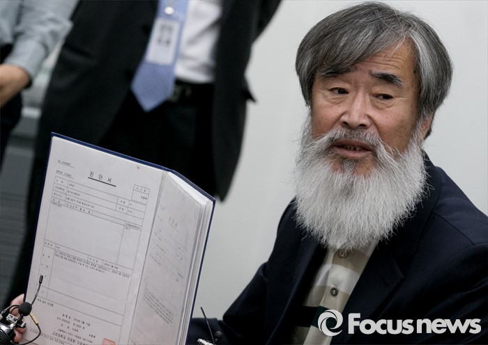 | △ 가족 진단서 들고 발언하는 가습기 살균제 피해자 |