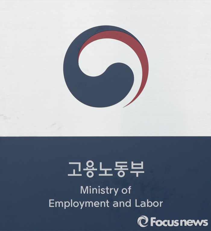 (세종=포커스뉴스) 25일 오전 세종시 정부세종청사 고용노동부 입구에 고용노동부 상징로고가 설치돼 있다.