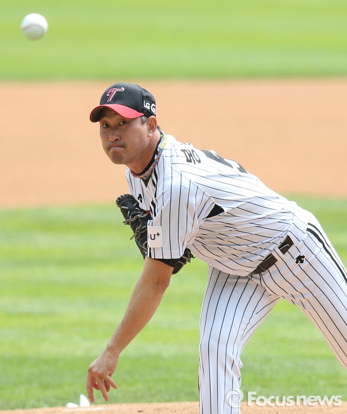 (서울=포커스뉴스) 1일 서울 잠실구장에서 열린 2016 프로야구 kt-LG 경기에서 1회초 LG 선발투수 봉중근이 투구하고 있다.