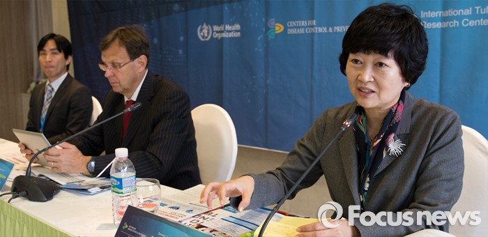 (서울=포커스뉴스) 27일 오전 서울 중구 프레지던트호텔에서 열린 'WHO 국제회의 기자 간담회'에서 고운영 질병관리본부 센터장이 인사말을 하고 있다.