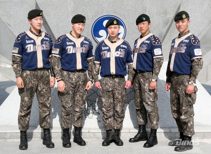 이날 NC는 육군 39사단 충무부대 장병 200명과 함께한다. 이들은 경기 전 특공무술 시범을 선보인다. 시구는 충무부대 조주연 중사가 맡는다.프로야구 NC가 충무공 탄신일인 28일을 맞아 선보이는 '충무공 유니폼'을 충무부대 장병들이 입고 포즈를 취하고 있다. <사진제공=NC 다이노스>
